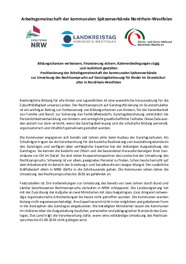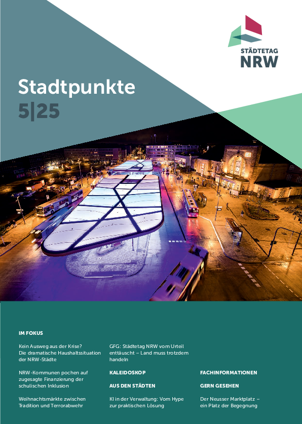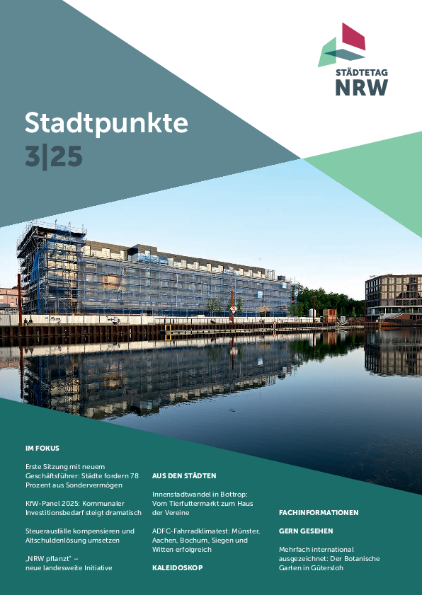 Mitglieder des Städtetages NRW erhalten im Mitgliederbereich exklusive Informationen. Dazu zählen Stellungnahmen, aktuelle Einschätzungen und Hinweise zu kommunalen Themen aus der Geschäftsstelle des Städtetages NRW. Informieren Sie sich zu Ihren Zugangsmöglichkeiten!