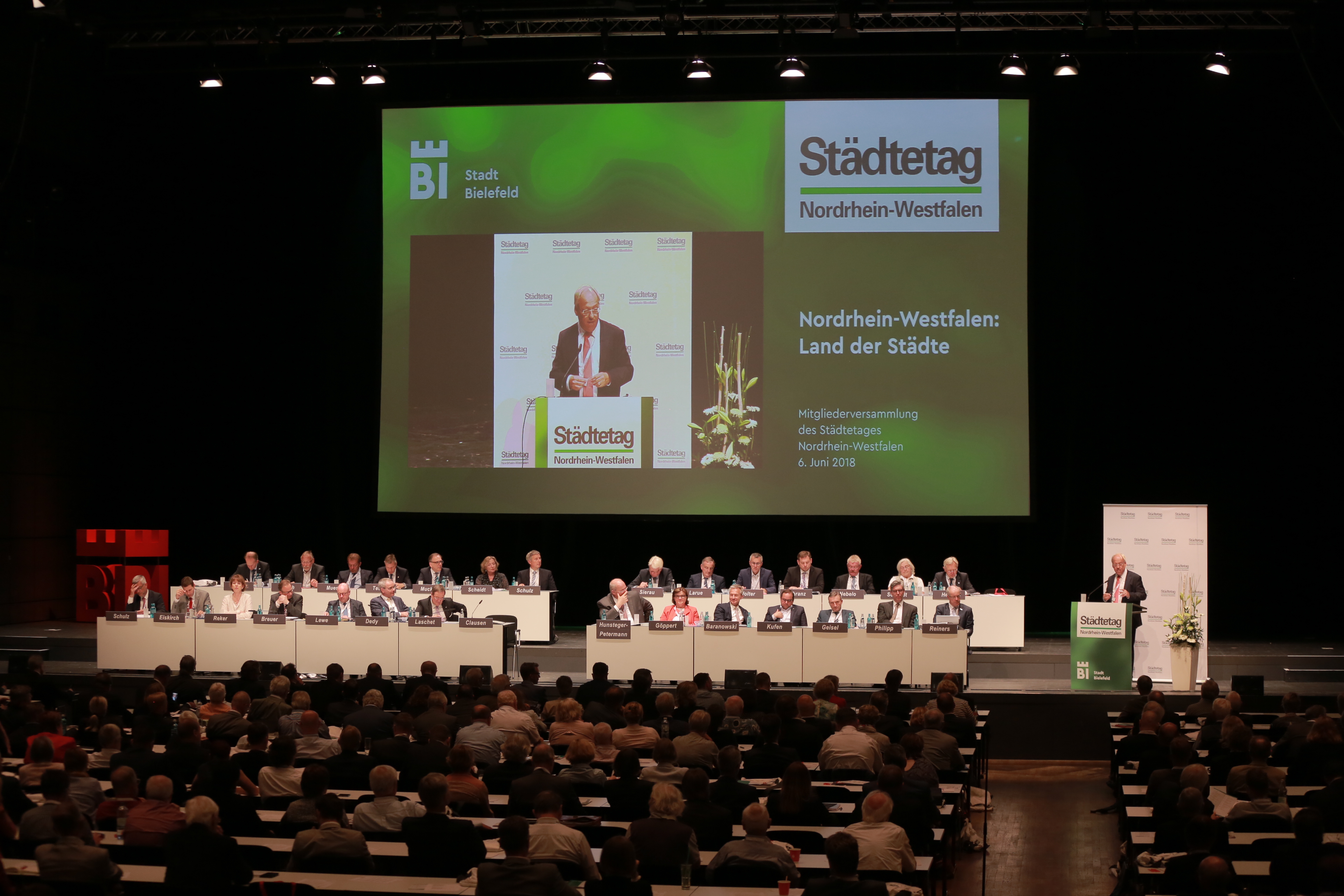 Zweiter Teil der Mitgliederversammlung mit Diskussionrund (v. l.): Eva-Maria Voigt-Küppers, stellvertretende Vorsitzende der SPD-Fraktion im Landtag NRW, Moderator Wolfgang Meyer (WDR 5) und Dr. Joachim Stamp, Minister für Kinder, Familie, Flüchtlinge und Integration des Landes NRW