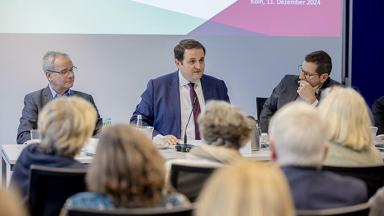 Die kommunale Wärmewende, eine zukunftssichere Pflege und das Recht auf Ganztagsbetreuung in Grundschulen – das sind wichtige Themen bei der diesjährigen Konferenz der Ratsmitglieder im Städtetag Nordrhein-Westfalen. Insgesamt kommen heute mehr als 100 Delegierte aus 39 Mitgliedsstädten des Städtetages NRW in Köln zusammen. Ein Schwerpunkt der Gespräche der Ratsmitglieder aus ganz NRW ist außerdem die Kommunalwahl im kommenden Jahr. Als Gast nimmt Nathanael Liminski, Chef der Staatskanzlei und Minister für Bundes- und Europaangelegenheiten, Internationales sowie Medien des Landes Nordrhein-Westfalen, an der Konferenz teil. Thomas Eiskirch, Vorsitzender des Städtetages NRW und Oberbürgermeister der Stadt Bochum, zu Beginn der Konferenz im Austausch mit den Ratsleuten: