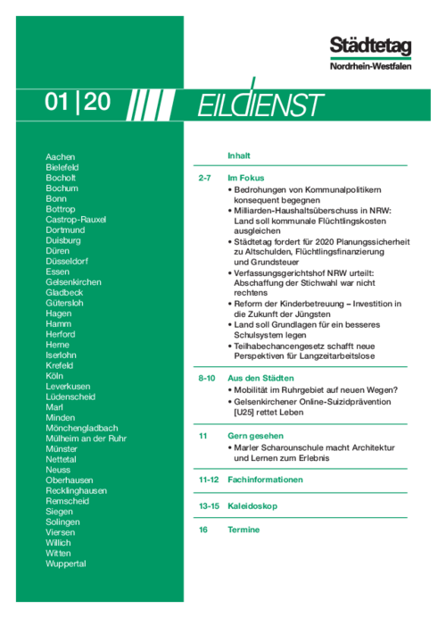 - Städtetag fordert für 2020 Planungssicherheit zu Altschulden, Flüchtlingsfinanzierung und Grundsteuer