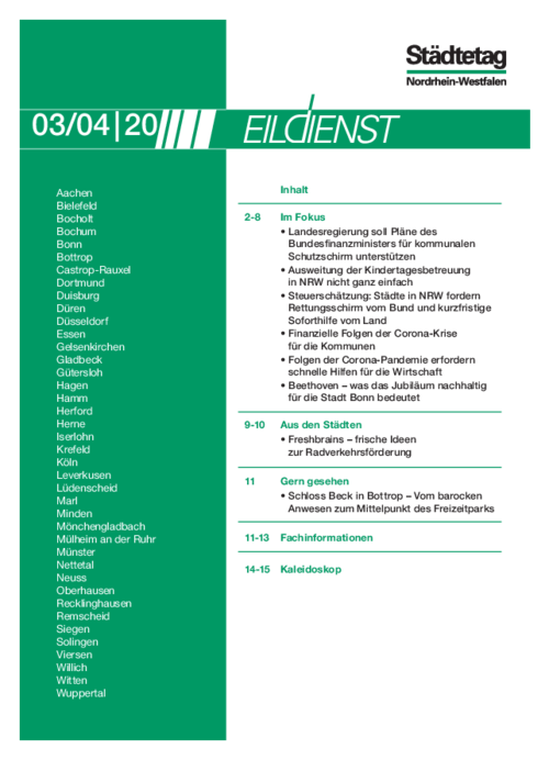 - Steuerschätzung: Städte in NRW fordern Rettungsschirm vom Bund und kurzfristige Soforthilfe vom Land