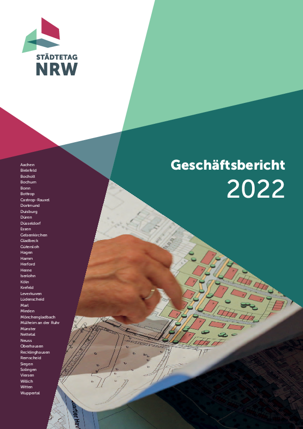 Dokumentation Geschäftsbericht 2022 Die Ausgabe dokumentiert die Schwerpunkte der Arbeit des Städtetages Nordrhein-Westfalen für die Jahre 2020 und 2021.