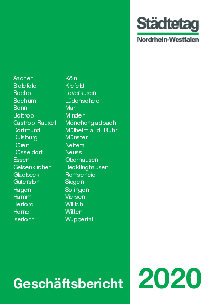 Dokumentation Geschäftsbericht 2020 Die Ausgabe dokumentiert die Schwerpunkte der Arbeit des Städtetages Nordrhein-Westfalen für die Jahre 2018 und 2019.