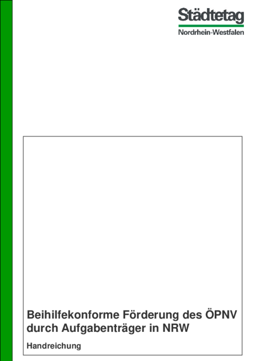 Entsprechend hat der Städtetag Nordrhein-Westfalen gemeinsam mit den anderen kommunalen Spitzenverbänden sowie Vertretern des Verkehrsgewerbes und der Verbünde in Nordrhein-Westfalen unter Moderation des Ministeriums für Bauen und Verkehr aktiv an den Überlegungen der Handreichung mitgewirkt, wie die bisherige Fahrzeugförderung auch nach Inkrafttreten der Verordnung (EU) Nr. 1370/2007 zum 3. Dezember 2009 und der schließlich zum 1.1.2013 erfolgten entsprechenden Novellierung des PBefG rechtssicher und beihilfekonform ausgestaltet werden kann.
