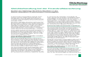 Die kommunalen Spitzenverbände Nordrhein-Westfalen – der Städtetag NRW, der Landkreistag NRW sowie der Städte- und Gemeindebund NRW – haben ein juristisches Gutachten zur Frage der Mindestfinanzausstattung für die Kommunen veröffentlicht. Anlass sind die Beratungen der Verfassungskommission des Landtags-Nordrhein-Westfalen unter anderem zur Stellung der kommunalen Selbstverwaltung im Rahmen der Landesverfassung und zur Umsetzung der Schuldenbremse in nordrhein-westfälisches Landesrecht.