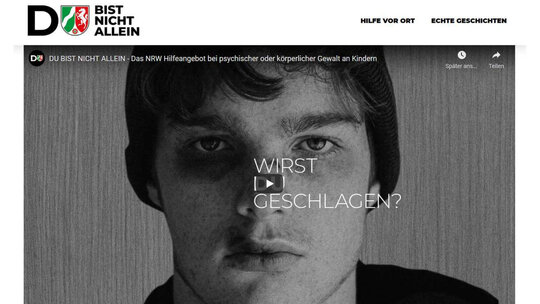 Das Portal www.dubistnichtallein.nrw bietet Hilfe für Kinder und Jugendliche in Nordrhein-Westfalen, die psychische oder körperliche Gewalt in Ihrem Alltag erfahren (haben). In Videos erzählen Mitarbeiterinnen und Mitarbeitern aus Jugendämtern wahre Geschichten von betroffenen Kindern und Jugendlichen. Zudem verweist die Seite auf lokale, landes- und bundesweite Hilfsangebote.