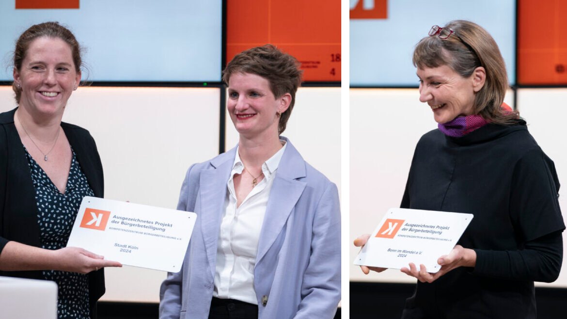 Die Stadt Köln und der Verein Bonn im Wandel e. V. sind unter den vier Preisträgern der diesjährigen Auszeichnung "Gute Bürgerbeteiligung", die vom Kompetenzzentrum Bürgerbeteiligung e. V. in Kooperation mit dem Berlin Institut für Partizipation vergeben wird. Daneben sind außerdem die Kommunen Sulz am Neckar und Brandis prämiert worden. Die vier Preisträger haben in ihren Kommunen vorbildliche Projekte und Maßnahmen umgesetzt, um Bürgerinnen und Bürger aktiv in Entscheidungsfindungen und Gestaltungsprozesse einzubinden.