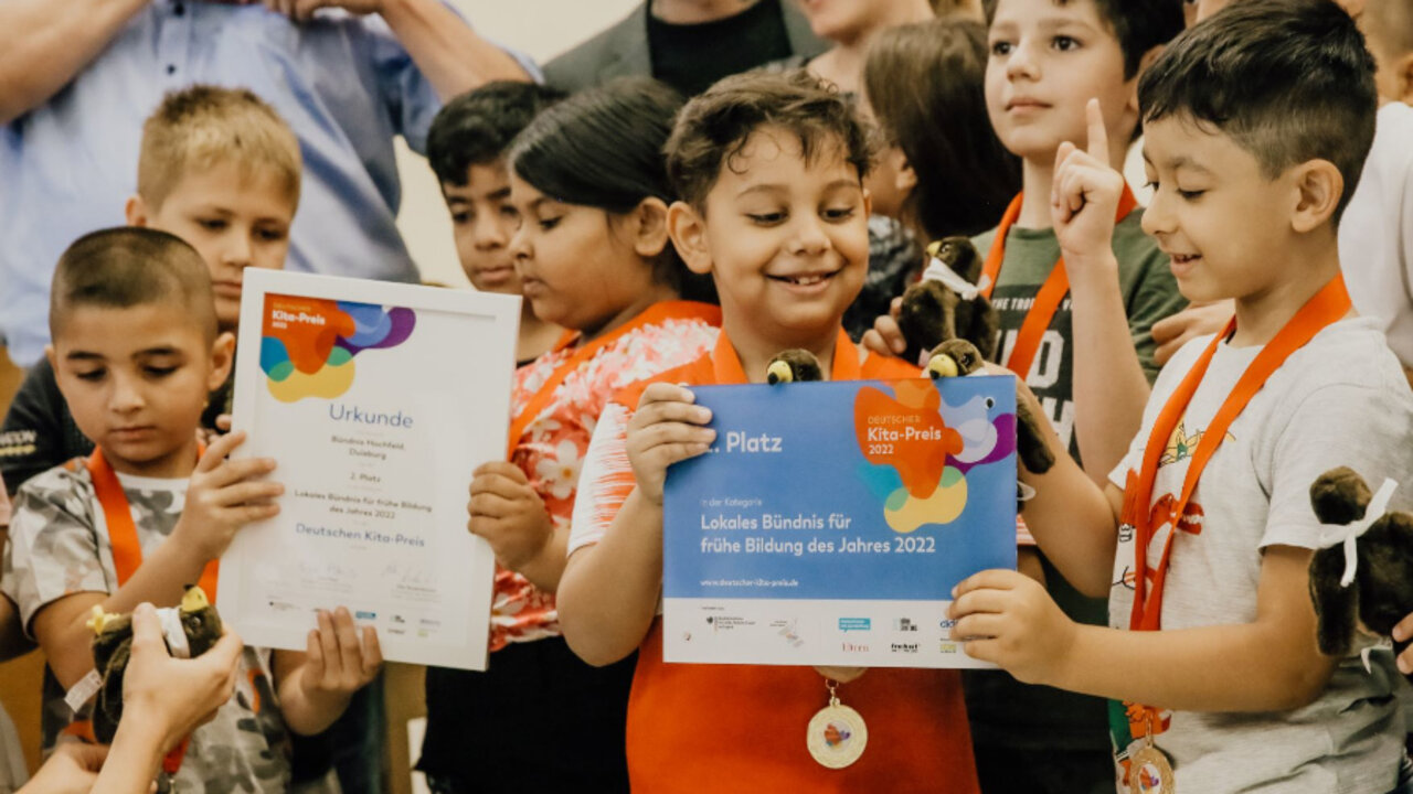 Die Kulturkitas in Dortmund sowie das Bündnis Hochfeld in Duisburg belegten beim Deutschen Kita Preis unter der Kategorie "Lokatles Bündnis für frühe Bildung des Jahres 2022" den zweiten Platz.
